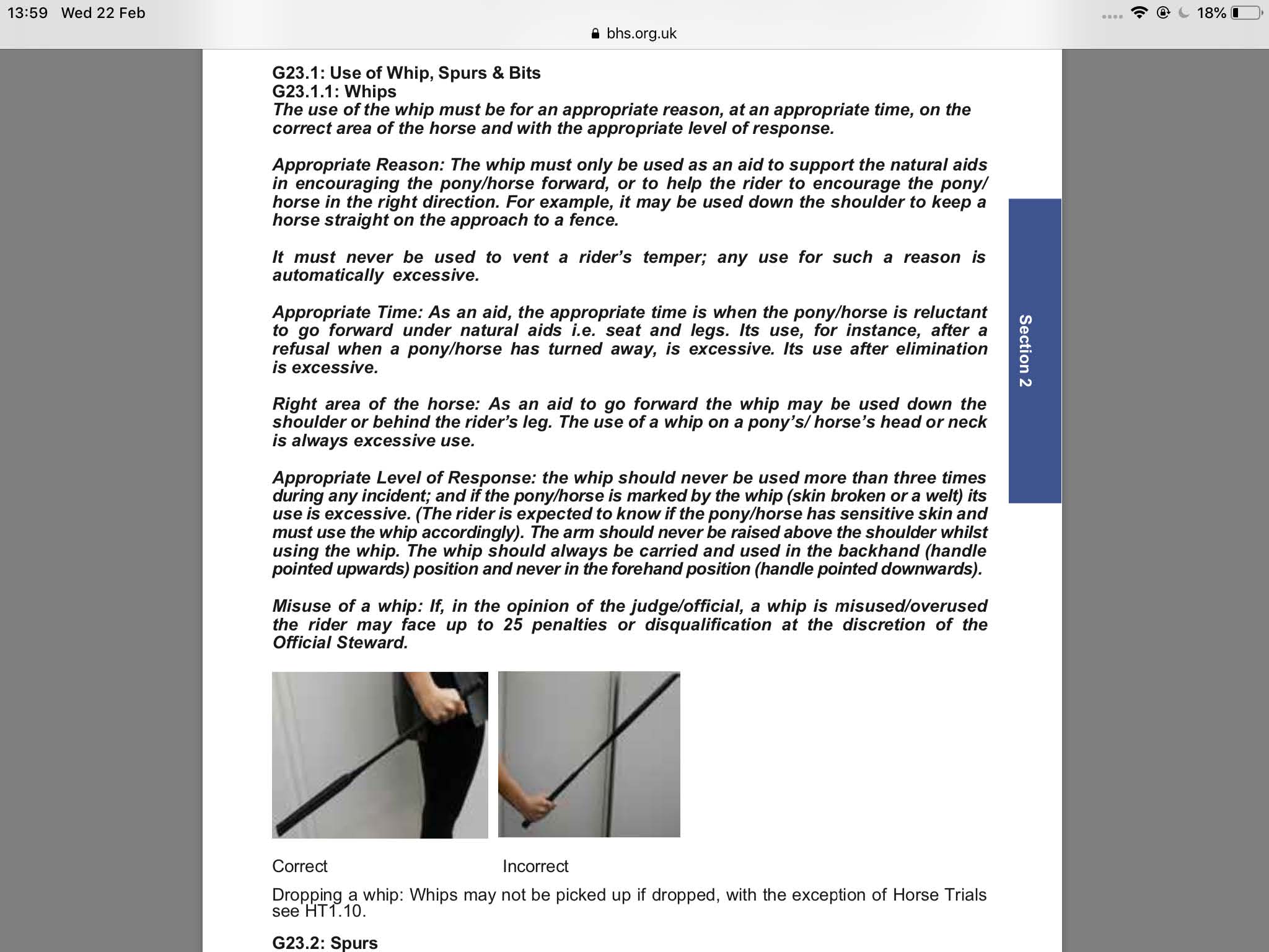 BRC are tightening up on the type of WHIP permitted for SHOWJUMPING and CROSS COUNTRY competitions. The WAY you USE your whip has also been tightened up in response the horse welfare concerns.